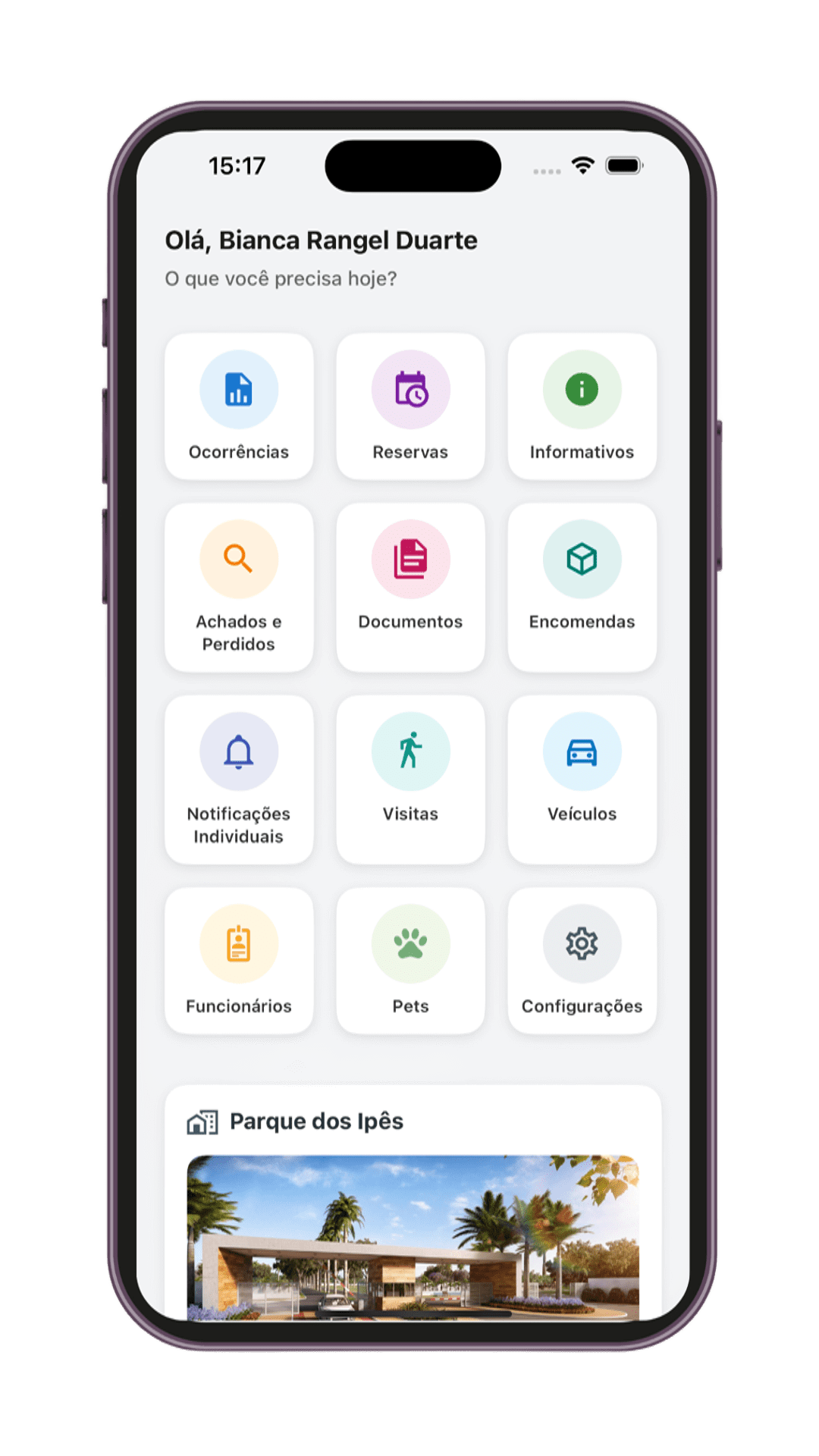 Uma solução completa com app para moradores e dashboard web para gestão profissional
